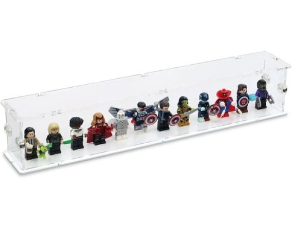 iDisplayit Baukasten Acryl-Display für 12 LEGO-Minifigur / mit weissem Boden und Noppen / Thema: Baukasten