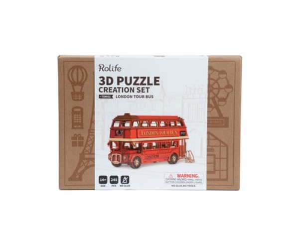 RoboTime Bausatz London Tour Bus 255-teilig / 3D-Puzzle aus lasergeschnittenen Holzteilen / Thema: Modellbausätze aus Holz