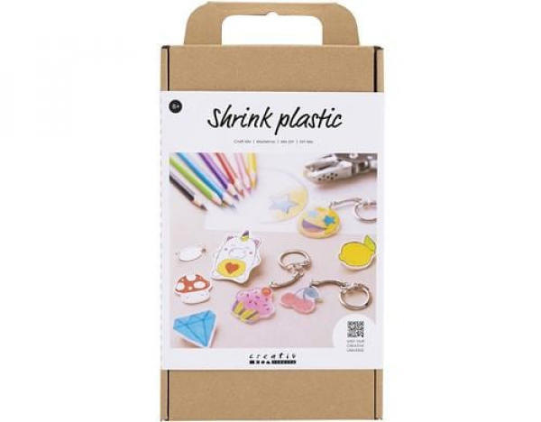 Creativ Company Bastelset Plastikschrumpf Schlüsselbänder / Platten, Buntstifte, Bänder, Nadel, Zange / Thema: Bastelsets