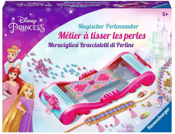Die romantische Welt der Disney Prinzessinnen in der eigenen Schmuckkollektion zum Leben erwecken, ist wohl ein Traum der meisten jungen Mädchen. Mit diesem schönen Webrahmen entstehen zauberhafte Armbänder und kreative Ketten in echter Handarbeit. Ein Set für echte Disney-Princess Fans! Der kindgerechte Webrahmen und die ausführliche Anleitung laden junge Designer dazu ein, ihre eigene Schmuckkollektion zu entwerfen. «Magischer Perlenzauber» überzeugt mit einem umfangreichen Paket, um Schmuckstücke in Handarbeit für echte Disney Princess-Fans herzustellen. Die 1250 Perlen und 48 m Stickgarn in verschiedenen Farben sowie eine stumpfe Nadel sorgen dafür, dass eine Vielzahl von Schmuckstücken am mitgelieferten Webrahmen entsteht. Dank der einfachen und ausführlichen Anleitung gelingt es schon Mädchen ab 5 Jahren, sich so als Schmuck-Designerin zu versuchen. Das einfache Webprinzip eignet sich besonders für Kinder, die sich mit Handarbeit vertraut machen möchten. Beim Einfädeln auf dem Webrahmen trainiert das Kind spielerisch seine Feinmotorik, Konzentration und Geschicklichkeit. So lernen Kinder schon in jungen Jahren, selbst hergestellte Dinge zu schätzen und sich eigenständig mit etwas zu beschäftigen.