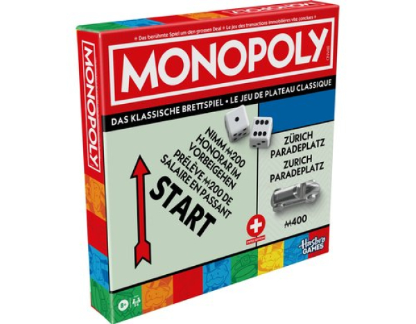Hasbro Familienspiel Monopoly Classic Refresh Schweizer Edition / 2-6 Spieler, ab 8 Jahren, D/F/I / Thema: Familienspiele