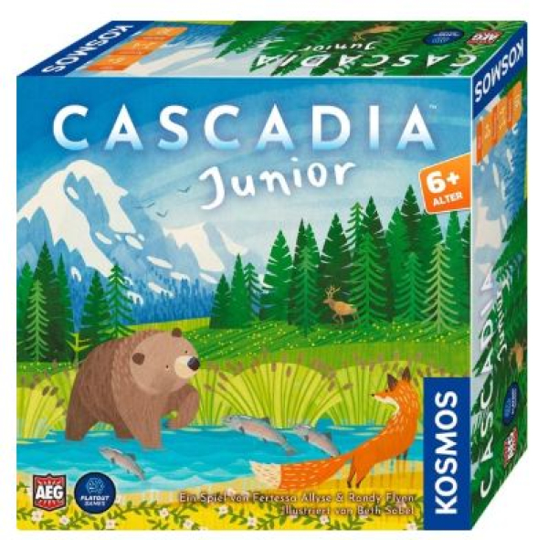 Hirsche, Füchse, Bussarde, Lachse, Bären: Viele Wildtiere leben in Cascadia. Und ihre Heimat soll noch schöner und größer werden! Um den Lebensraum weiter auszubauen und zu gestalten, werden passende Wildnisplättchen ausgesucht und an der richtigen Stelle angelegt. Liegen drei gleiche Tiersymbole nebeneinander, können die Tiere in die eigene Landschaft der Spielerin oder des Spielers umziehen. Wer sammelt so die meisten Punkte? Und wer schafft es, drei gleiche Lebensräume nebeneinander zu platzieren? Hier kommt das Spiel des Jahres 2022 in einer Version schon für Kinder ab sechs Jahren. Ein abwechslungsreiches und wunderschön gestaltetes Legespiel für Natur- und Tierfans.