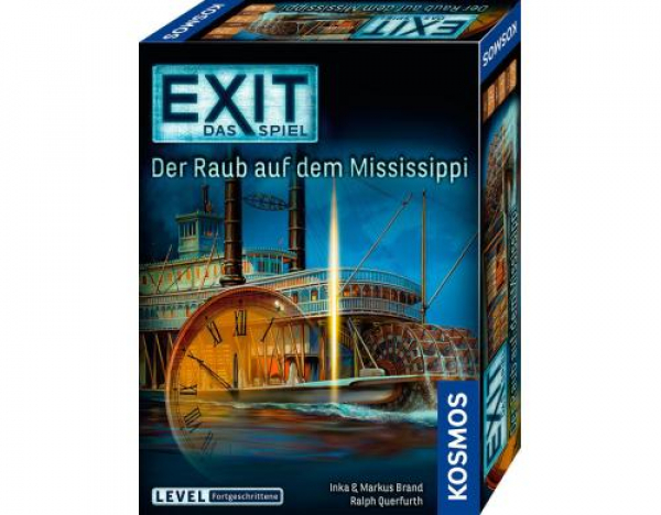 Im EXIT Spiel „Der Raub auf dem Mississippi“ finden sich die 1–4 Spieler in einer spannungsgeladenen Story wieder: Sie schlüpfen in die Rollen von Detektiven auf einem Mississippi-Dampfer. Der Kapitän braucht ihre Hilfe, um einen Raub an Bord aufzuklären. Möglichst schnell müssen es die Spieler schaffen, den Dieb zu überführen, bevor dieser das Schiff verlassen kann. Werden sie den Täter schnappen, ehe sie im Zielhafen New Orleans ankommen? Das Escape-Room-Feeling für zu Hause! Bei „EXIT – Das Spiel“ entdecken die Spieler mit etwas Kombinationsgabe, Teamgeist und Kreativität nach und nach immer mehr Gegenstände, knacken Codes, lösen Rätsel und kommen so ihrem Ziel Stück für Stück näher. Dabei müssen auch ungewöhnliche Wege beschritten werden: So darf das Material geknickt, beschriftet oder zerschnitten werden. Gerade das Verändern des Materials ermöglicht ein besonders spannendes, einzigartiges und verblüffendes Spielerlebnis. Das macht den Spieleabend zu einem absoluten Highlight! Live-Escape-Feeling im Fortgeschrittenen-Level.