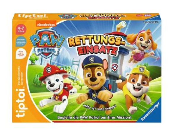 Die Paw Patrol ist wieder unterwegs: Ob zu Wasser, in der Luft oder an Land - die Retter auf vier Pfoten erfüllen spannende Missionen auch in diesem tiptoi-Spiel. Für jeden Einsatz stellen 1-4 Spieler ein Hundeteam entsprechend der geforderten Fähigkeiten und Attribute zusammen. Muss ein Feuer gelöscht werden? Dann ist Marshall die beste Wahl. Wird eine Person vermisst? Spürnase Chase ist in dem Fall der perfekte Hund. Sobald das Team steht, führen die Kinder mit den Hunden die Rettungsmission durch. Dieses Brettspiel für Kinder ab vier Jahren wird durch Nutzung des separat erhältlichen tiptoi-Stifts so richtig lebendig: Geräusche, Sprache und Musik sorgen für ein interaktives Spielerlebnis!