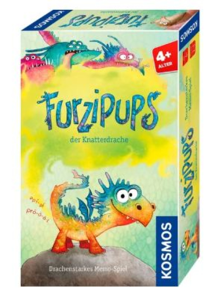 Wo ist Furzipups? Er versteckt sich vor seinen Freunden Hicksi und Rüdiger. Beim Weglaufen knattern Pupse aus Furzipups heraus. Hicksi und Rüdiger müssen nur der Duftspur folgen! Zwei bis vier Spielende ab vier Jahren versuchen gemeinsam, Furzipups zu fangen. Nach und nach hinterlässt er bunte Pupswolken in unterschiedlichen Farben auf kleinen Chips. Wird die dazu passende Farbe bei den Memokärtchen aufgedeckt, rücken Rüdiger und Hicksi vor. Ist eine andere Farbe auf dem Memo-Kärtchen abgebildet? Dann entscheidet der Würfel, ob Furzipups noch ein Stückchen weiter vorrückt. Findet ihr ihn?
