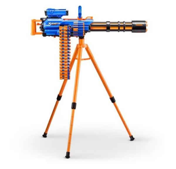 Der motorisierte Rage Fire Blaster ist so gross, dass er mit einem Stativ ausgestattet ist. Laden Sie den automatischen Munitionsgürtel mit 40 Darts auf, um mehrere Ziele aus bis zu 27 m Entfernung in Sekundenschnelle auszuschalten! Er kommt mit einer grossen Menge an Zubehör.