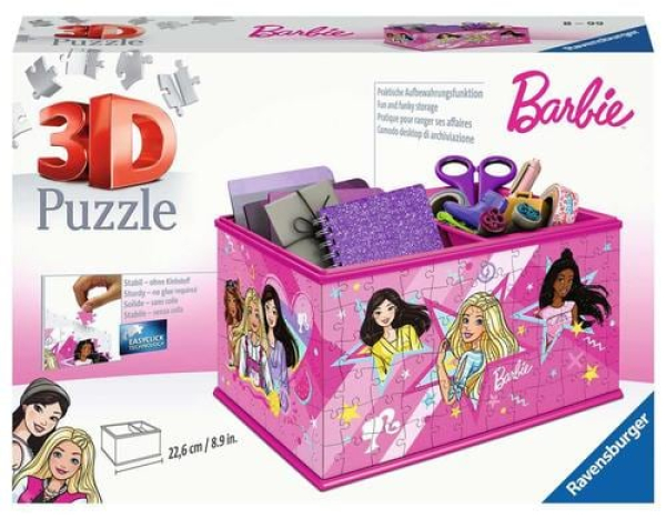 Entdecke die faszinierende Ravensburger 3D Puzzle Aufbewahrungsbox Barbie! Mit ihren Maßen von 22,6 x 15,5 x 13,5 cm bietet sie ausreichend Platz für jede Menge Schätze. Das Zusammenbauen dieses einzigartigen 3D-Puzzles mit seinen 216 teils knickbaren Teilen ist nicht nur eine spannende Herausforderung, sondern auch ein wunderbares Freizeitvergnügen. Diese Aufbewahrungsbox ist mehr als nur praktisch - sie ist auch ein echter Blickfang in jedem Raum. Dank ihrer hochwertigen Verarbeitung und des liebevollen Designs wird sie zum absoluten Hingucker. Die detailreiche Darstellung der Barbie begeistert nicht nur Fans der berühmten Puppe, sondern zaubert auch ein Lächeln auf jedes Gesicht.