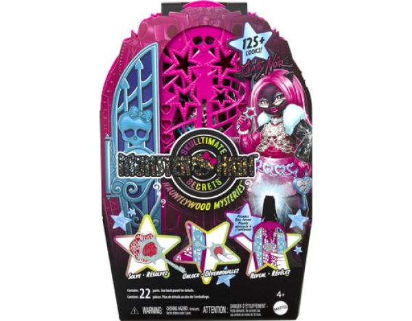 Bei diesem schaurigen Kleiderschrank-Spielset mit dazu gehörender Puppe aus der Serie Monster High gilt: Erst lösen, dann aufschließen und enthüllen! Catty Noir hat Hauntlywood in Clawifornia einen Besuch abgestattet und ist nun wie vom Erdboden verschluckt! Um ihren Aufenthaltsort zu finden, muss nach Hinweisen gesucht werden, wobei mehr als 19 Überraschungen in 3 schrecklich-spaßigen Schritten zu entdecken sind. Sind alle Rätsel gelöst, lassen sich die Mode-Accessoires zu vielen verschiedenen Outfits kombinieren. So legt Catty immer einen glamourösen Auftritt hin!
