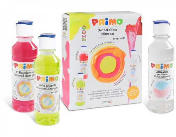 Primo Kleber Fluo-Slime-Set / 2 Farben, 1 Aktivator / Thema: Klebstoffe