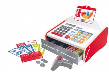 Mit dieser Spielkasse wird der Umgang mit Geld erlernt. Wählen Sie Ihre Lebensmittel aus und bestimmen Sie den Preis. Ausgestattet mit einem solarbetriebenen Taschenrechner, einem Lesegerät mit Licht und Soundeffekten, Münzen und Geldscheinen, die in der Kassenschublade aufbewahrt werden können.