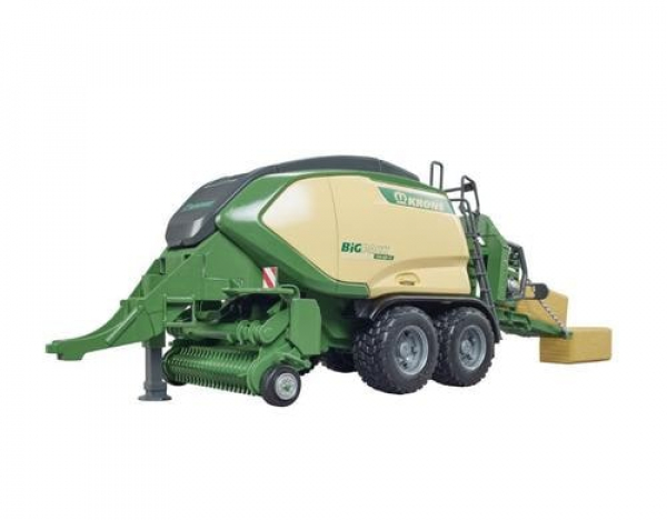 Die Firma Krone ist ein innovativer Hersteller von Erntemaschinen. Mit der neuen Baureihe der BiGPack Großpackenpressen zeigt KRONE einmal mehr, dass auch nach mehr als 25 Jahren die Innovationskraft keinesfalls nachlässt. Die BigPAck 1290 ist das Top Modell von KRONE und neu im landwirtschaftlichen Sortiment von BRUDER zu finden. Wie das Original, überzeugt auch das Spielzeug mit innovativen Funktionen. Der Pick-up ist abklappbar und wird über seitliche Räder angetrieben. Die Seitenklappen sind zu Öffnen und bieten Zugang zur detaillierten Mechanik. 2 Großballen können über die Mittelklappe eingelegt werden und die Presse transportiert, bei aktivem Pickup, diese automatisch zum Auswurf. Dieses tolle, neue Modell von BRUDER passt an alle Traktoren der 2000er, 3000er und 4000er Serie. Für noch mehr Spielspaß kann das Zubehör Quaderballen (Art.-Nr. 02342) hinzugefügt werden. NV