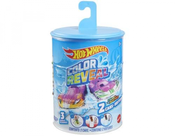 Für den ersten Farbwechsel den Behälter mit Wasser füllen und jedes Fahrzeug darin herumwirbeln, bis das Wasser die Farbe ändert, dann das Fahrzeug herausnehmen. Es kommen coole Verzierungen zum Vorschein! Warmes Wasser macht es rückgängig.