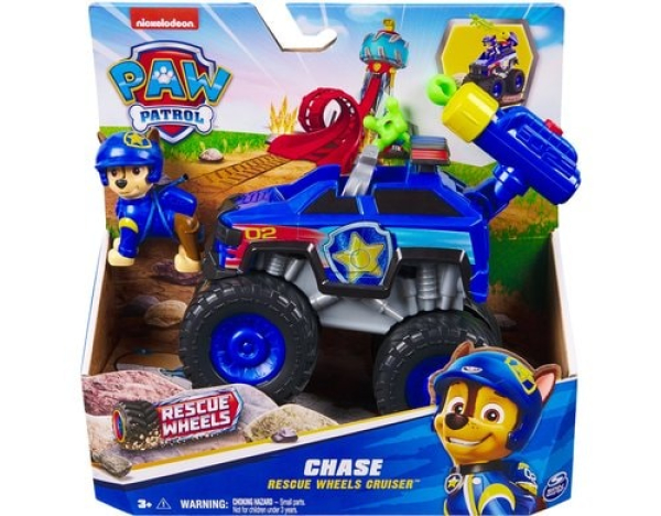 Chaos in der Abenteuerbucht! Dort findet eine Monstertruck-Rallye statt, an der auch der Trucker Boomer teilnimmt. Er gewinnt aber nicht und ärgert sich so sehr, dass er nun für allerlei Ärger sorgt. Die tierischen Helden der Paw Patrol mit ihren Rescue Wheels Monstertrucks sind also gefragt. Chase ist mit seinem neuen Monstertruck natürlich am Start, um bei den Rettungsmissionen zu helfen. Sein Truck mit extra großen Rädern ist perfekt für Action im Gelände ausgerüstet. Er besitzt außerdem einen Geschoss-Abwurf mit zwei Geschossen, die über einen Knopf abgefeuert werden können. Keine Chance für Gegner! Im Lieferumfang enthalten sind Chases Monstertruck mit Geschoss-Abwurf, zwei Geschosse und eine abnehmbaren Chase-Figur - alles im Look der Serie "Paw Patrol Rescue Wheels"!